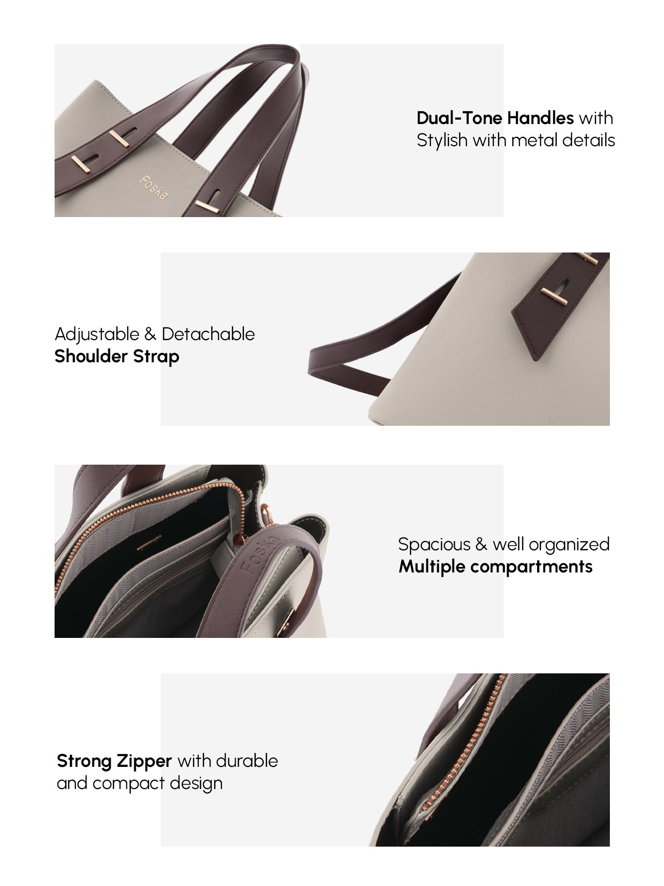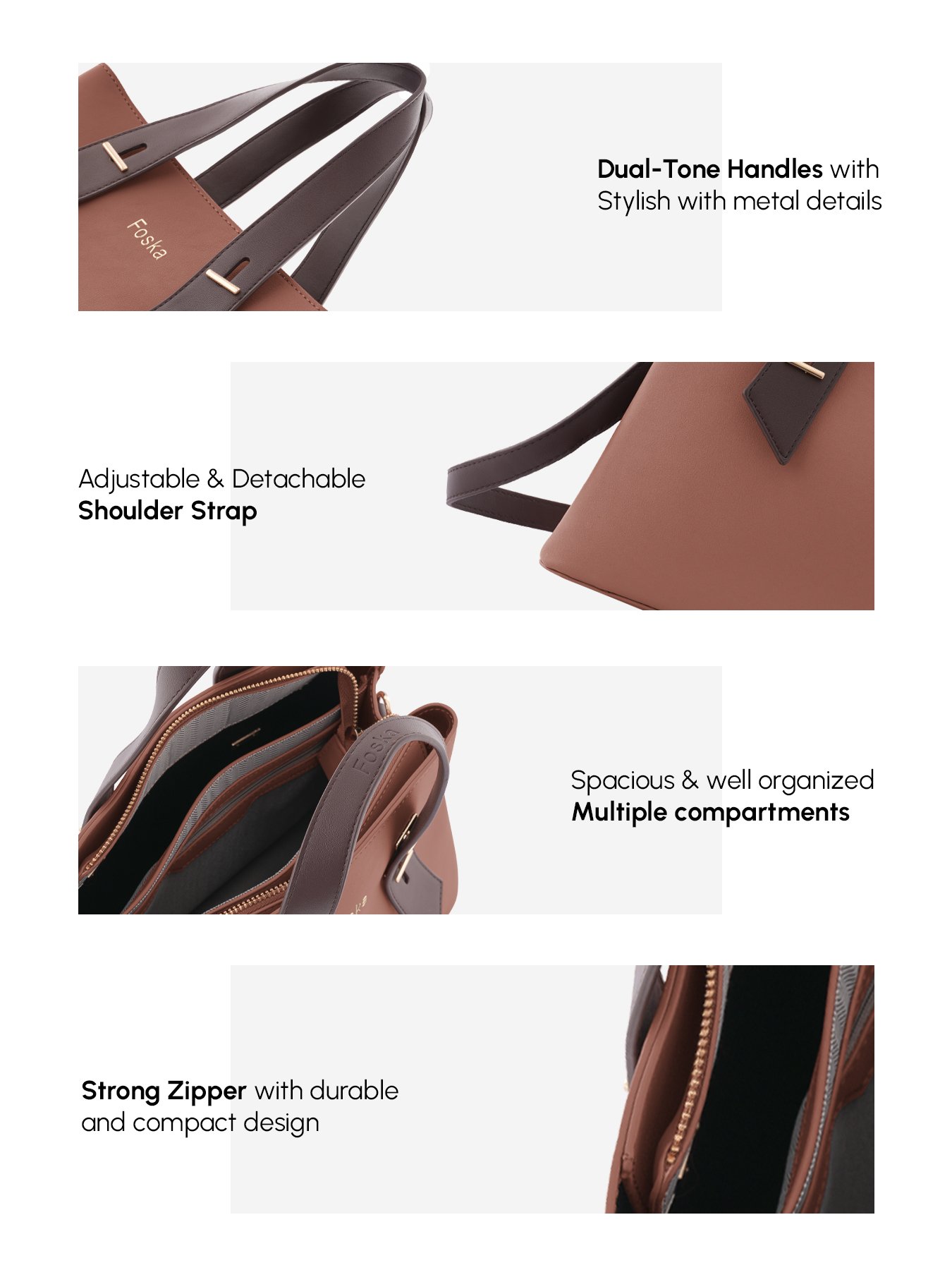 This elegant and functional Foska tote bag is the perfect accessory for both daily use and professional settings, combining a chic design with practical features.