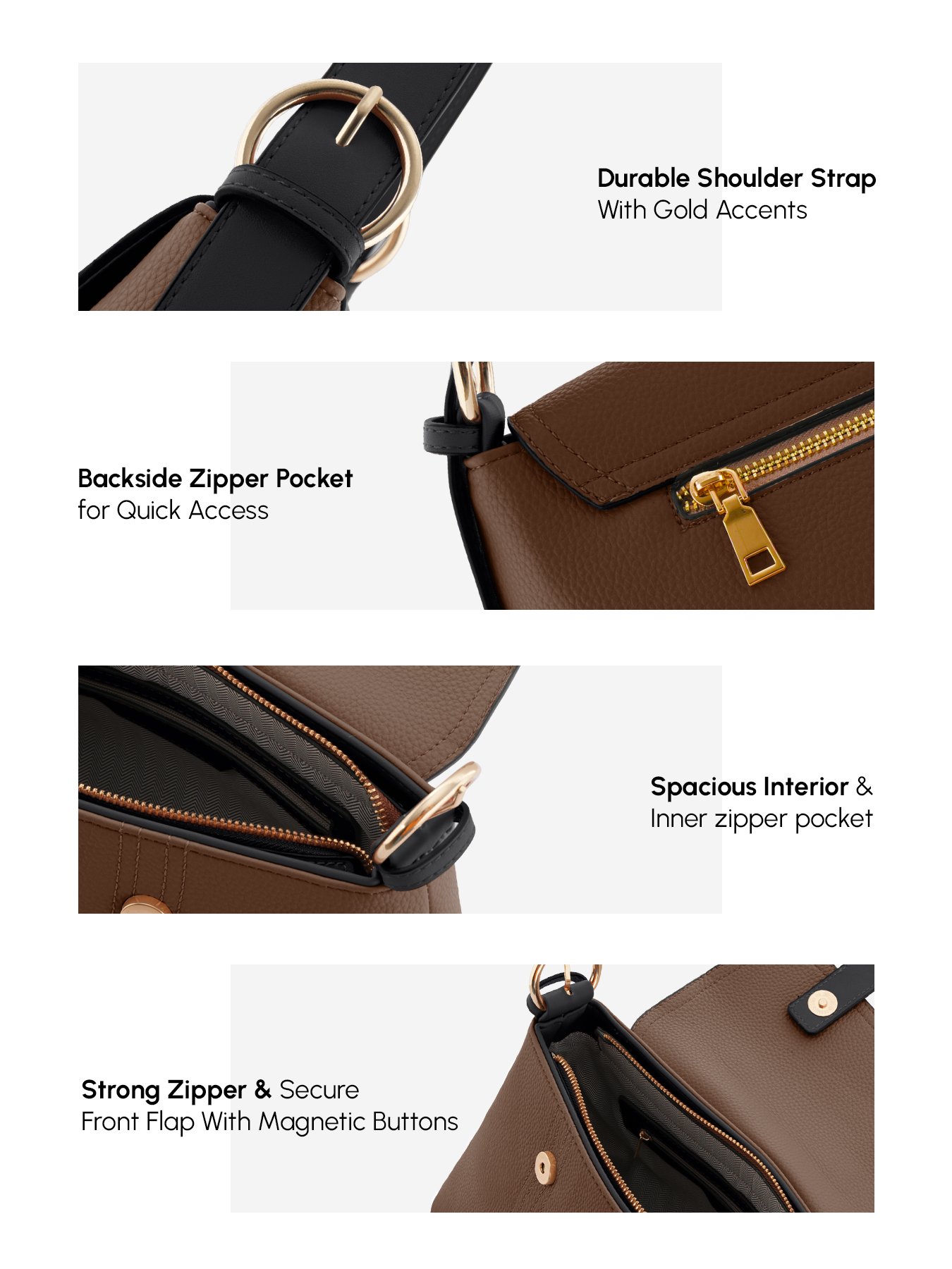 Capacity: The spacious interior provides ample room for all your daily essentials such as your phone, wallet, makeup, and more.