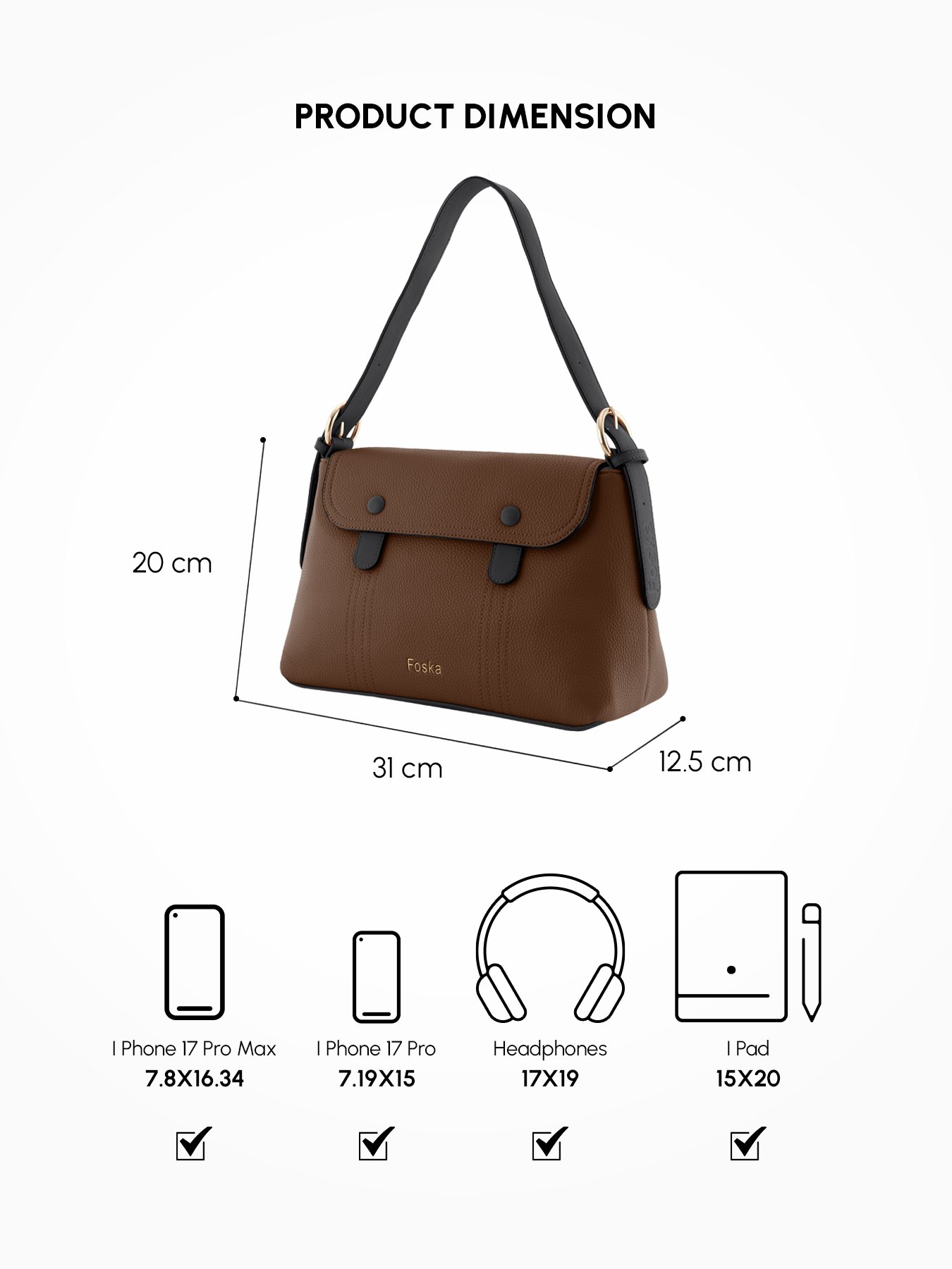 This chic and functional Foska shoulder bag offers a timeless design, perfect for both casual and formal occasions.