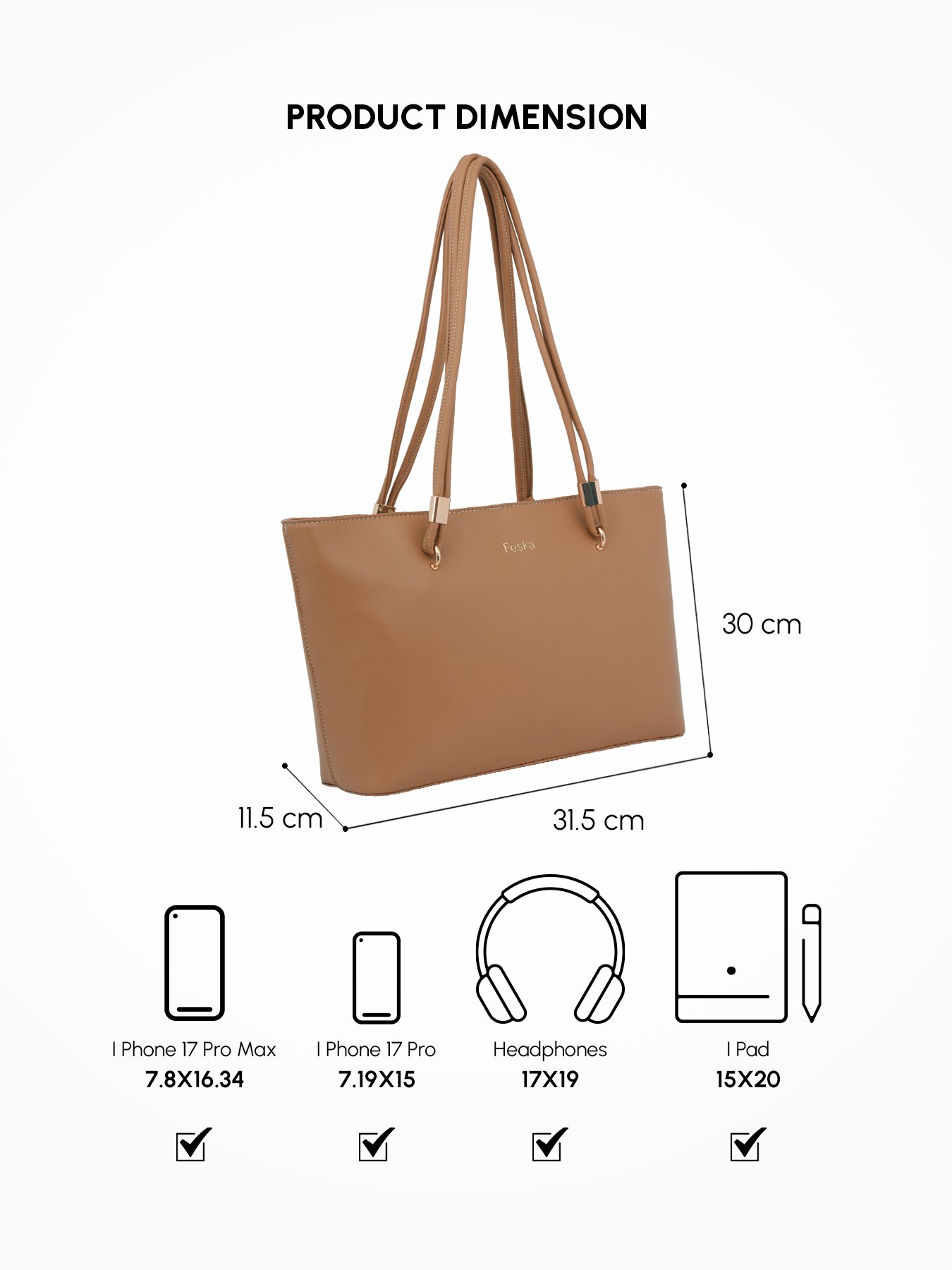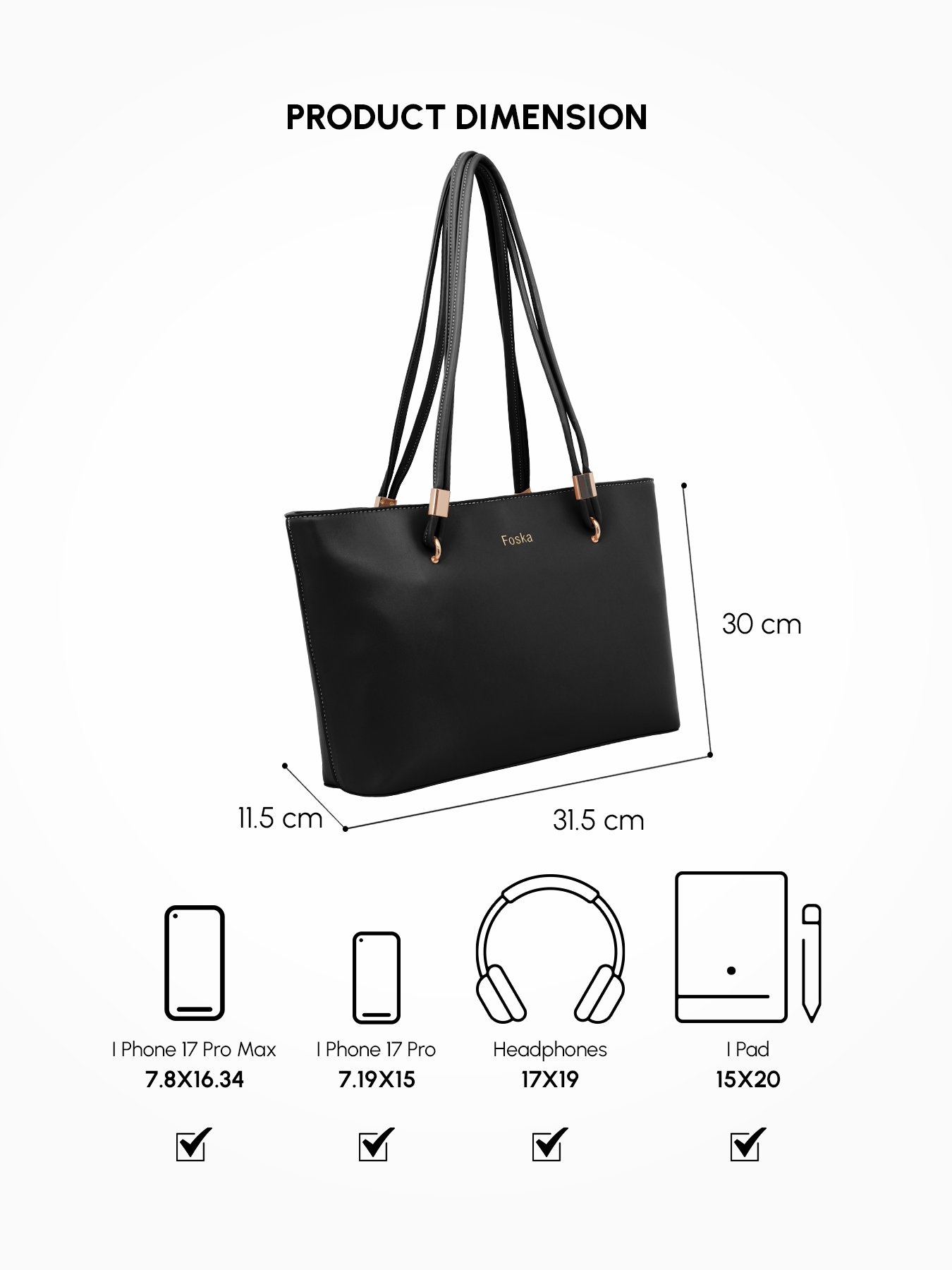 This elegant and functional Foska tote bag is the perfect accessory for both daily use and professional settings, combining a chic design with practical features.