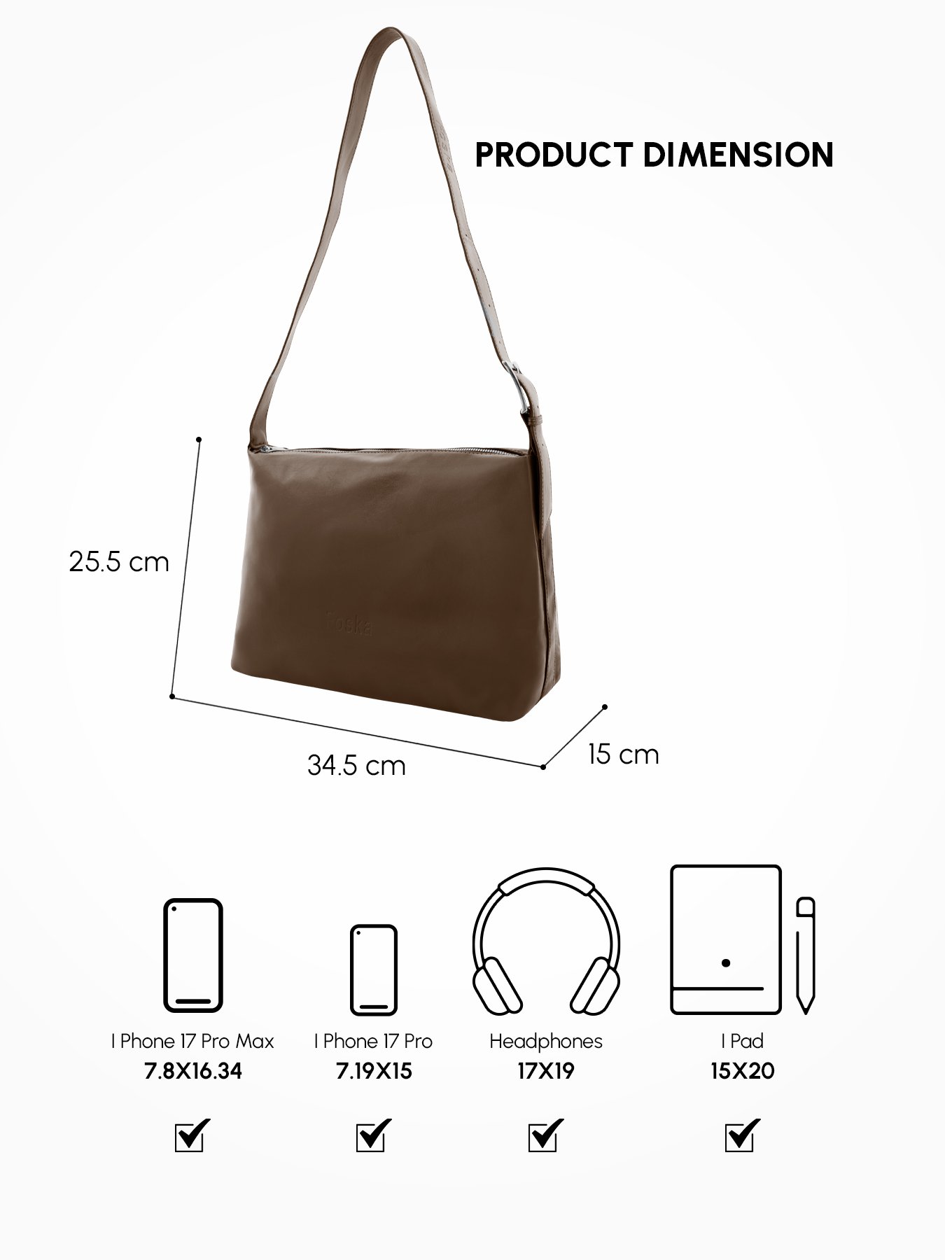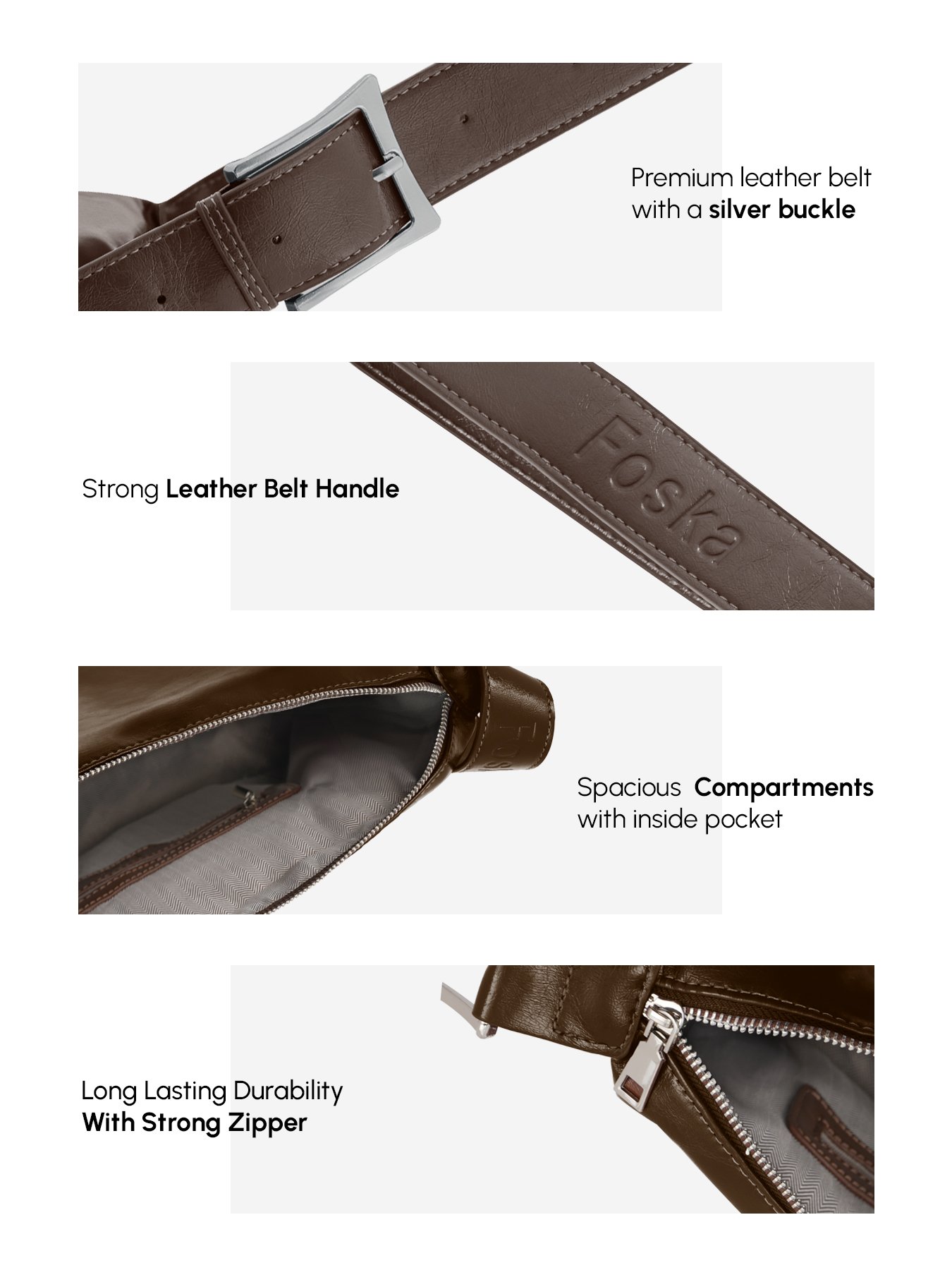 This minimalist and stylish Foska bag is an ideal, versatile accessory for both daily use and professional settings, offering a blend of modern design and practical features.